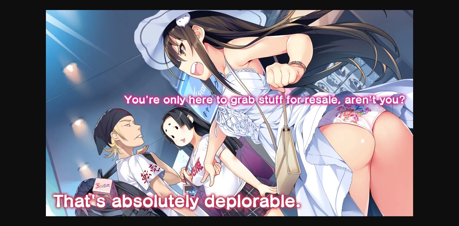 Japanese game, male protagonist, blackmail, school setting, oral sex