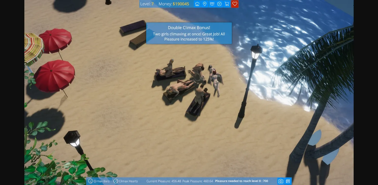 Compatibility is the key to generating the most female pleasure, so pay close attention to the five measures of compatibility within your couples. But if they are not a perfect match, you can always buy items that help to increase their compatibility.