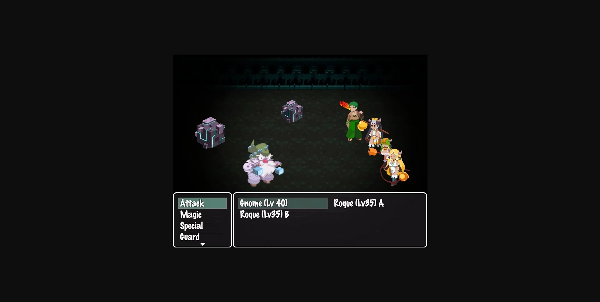 ◉ Original pixel- and portrait art. The "surrender" system, where single encounters can surrender when the party deals too much damage in the first turn. An enemy wo surrenders will give you the chance to let it go, and while this means you won’t get the exp, the enemy will leave you a present.