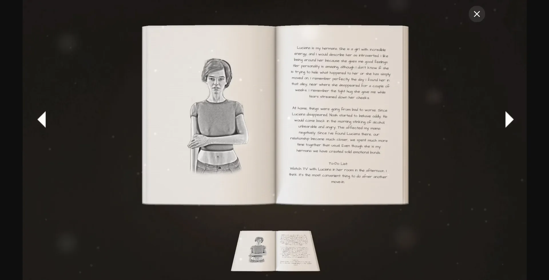 Something happened in the past. You have joined the witness protection system. A new city, new faces, new places. An uncertain future in which you will decide what will happen to you and those around you. The diary is an ambitious long-term project in which you will be immersed in a dark main story as well as secondary stories of people you will meet in your new life.