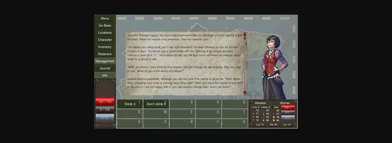 Here is a short changelog, since this update is pretty much only story (over 35k words of content tho!): The final quests for Lucina, including the choice to make her sub or dom creature, and to allow her to transform servants into goo-girls. This things will be implemented in the future tho! Introducing Itzel and her whole story line (except by the ending)! With 30k of content, she has over 15 quests, she will have 4 endings available depending which church you decide to build (if you decide to worship the goddess of love or the one of order) and if you corrupt Itzel or keep her pure! Right now you can get too 0.2.4 in patreon for $5+, which includes: Final quest for Itzel. She has 4 endings depending if you decided to worship the goddess of discipline or the goddess of love, and if you corrupted her or kept her pure. Virgil, he has 3 different routes: One where he is perverted and one where he is shy. Although the quest are named the same, the content is wildly different. He has 3 quests so far per route and should be mention that some of the quests are worth repeating to see the different sex scenes available. (over 30k words of content) Luna will have two different routes: One where is dominant and other where you turn her into a submissive. For now only the submissive route is implemented and it consists in 5 quests. (8k words of content)