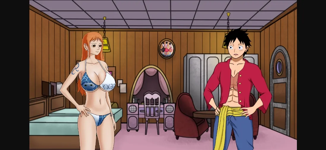 One Slice of Lust is a parody game based on the One-Piece anime story. The story revolves around the StrawHat Pirates who are targeted by one of the great emperors, Marshall D. Teach that makes them more desperate to meet their sexual needs that they never had before.