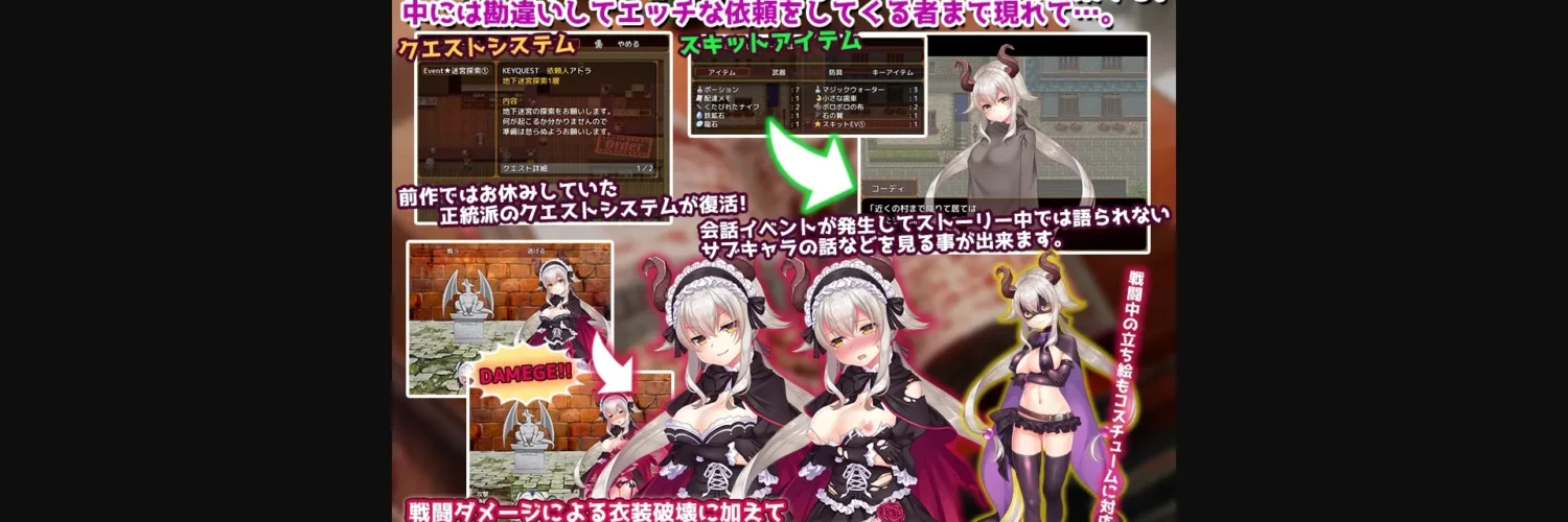 2DCG, 2D game, Japanese game, Censored, Female protagonist, Monster girl, Big tits, Tentacles, Oral sex, Multiple penetration, Vaginal sex, Anal sex, Turn based combat, Creampie, Rape, Monster, Group sex, Lesbian, Teasing, Groping, Internal view, Handjob, Titfuck, Fantasy, Corruption, Shota