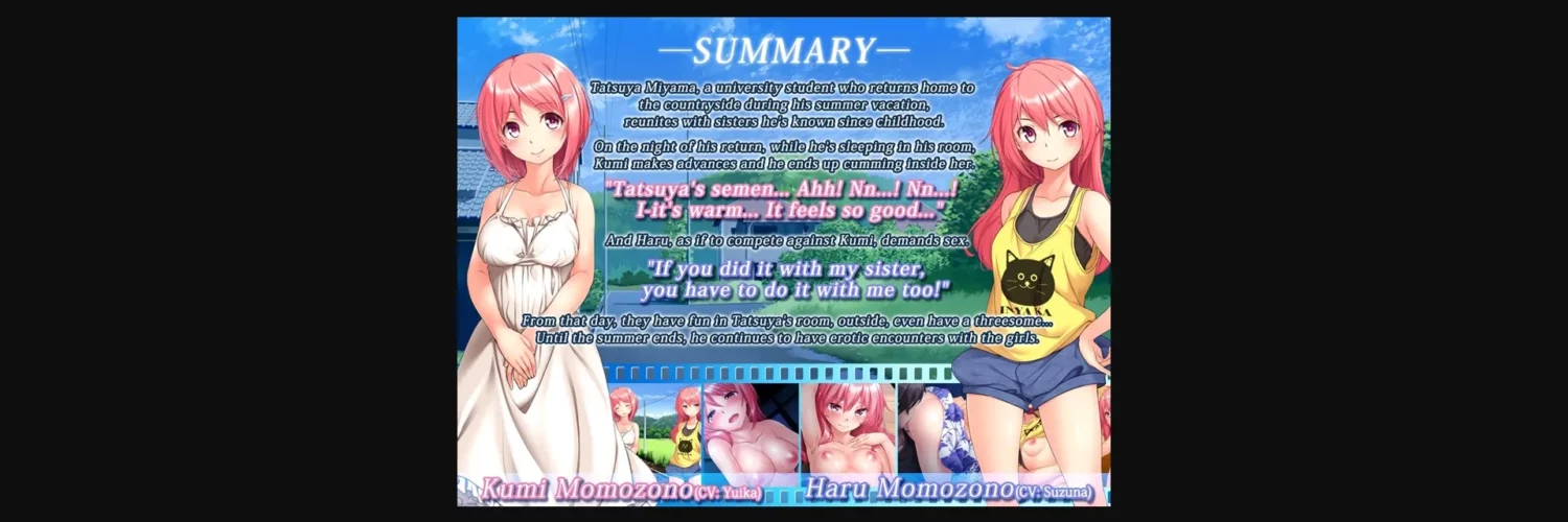 After a long time, he comes back to the countryside during his summer vacation to see his parents. There he meets his childhood friends: Kumi and Haru Momozono.