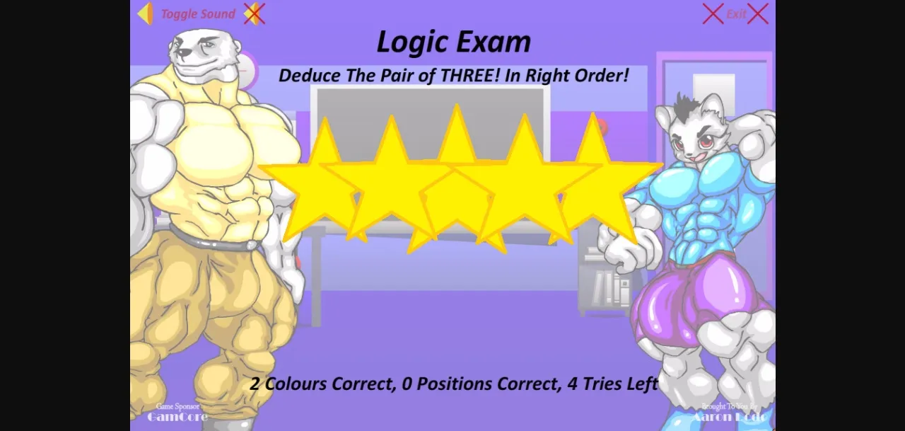 The game is part dating sim and part puzzle solving. Solving more of the randomly generated puzzles allows the player to advance further in the story, and get more steamy rewards. Each subject of affection requires a different combination of puzzle completion. There are 9 love interest, 4 side characters, hundreds of revealing or nude images of hyper-masculine furry males, and hundreds of steamy animations during adult scenes. Aside from the 9 endings from the love interests, there are 4 bonus endings too!