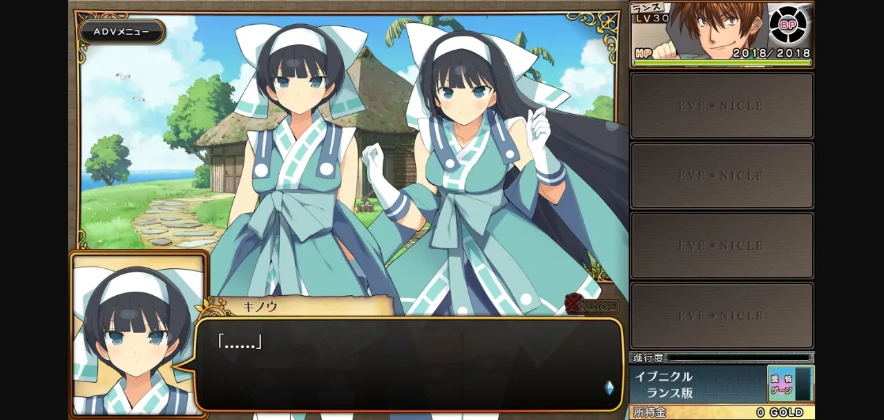 - You may need to make a folder in your documents AliceSoft\イブニクル・ランス版\SaveData and another AliceSoft\イブニクル・ランス版\Screenshot in order to save/take screenshots.