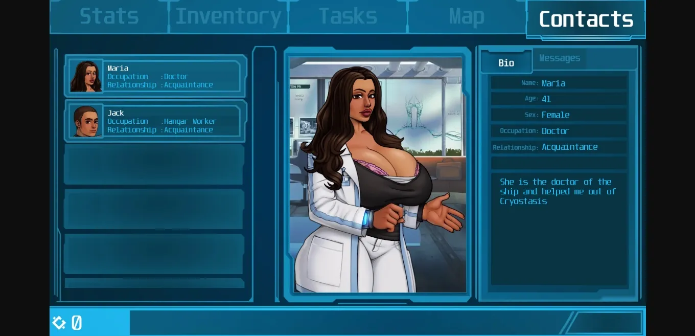 1. Added a section for the completed quests and reworked the clock. Added a replay and CG section in the gallery. Added a message system and a notification whenever you increase your stats. Map appears first when you click on the tablet.