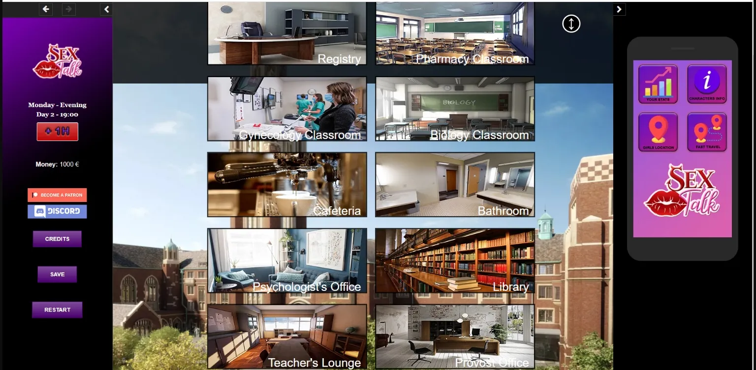 - Added events in Park and Gym with many characters based on the time.