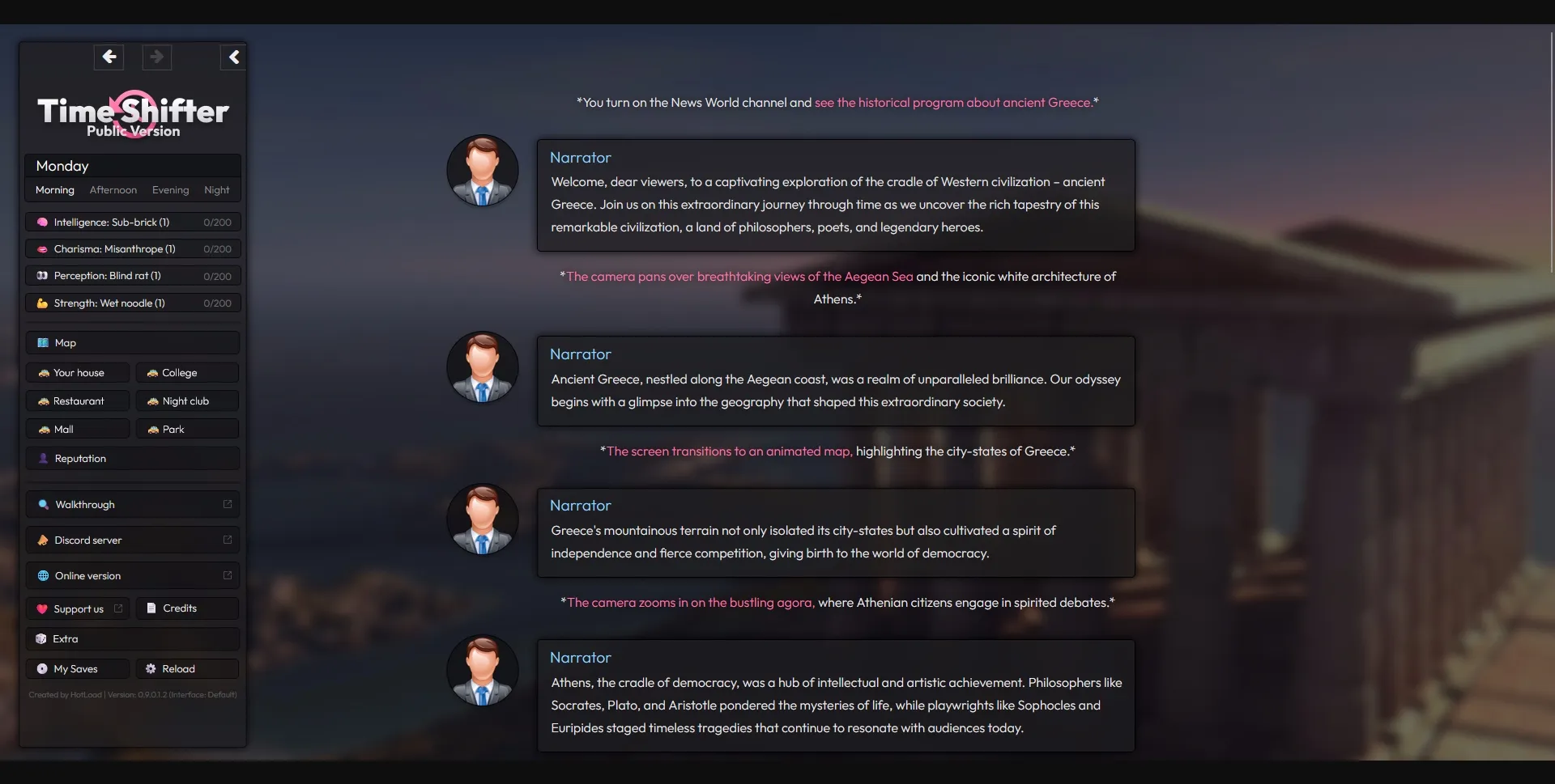 Time Shifter is a text based, open world game for adults about time travel.