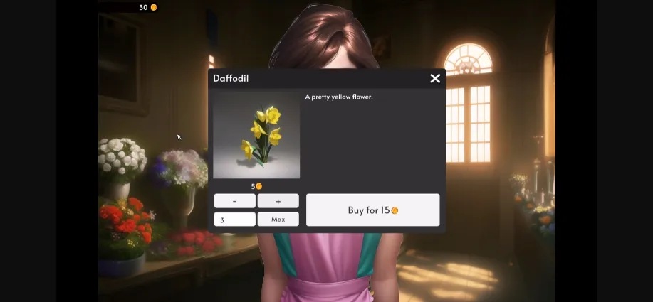 * There are inventory items now! You can gather items in the environment, buy them, sell them, and give gifts. Giving gifts makes characters like you more, which will unlock new scenes and outfits.