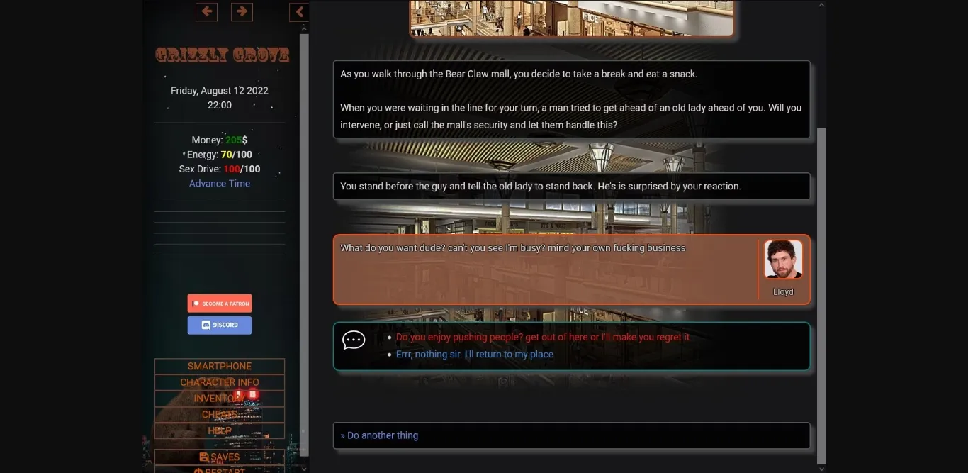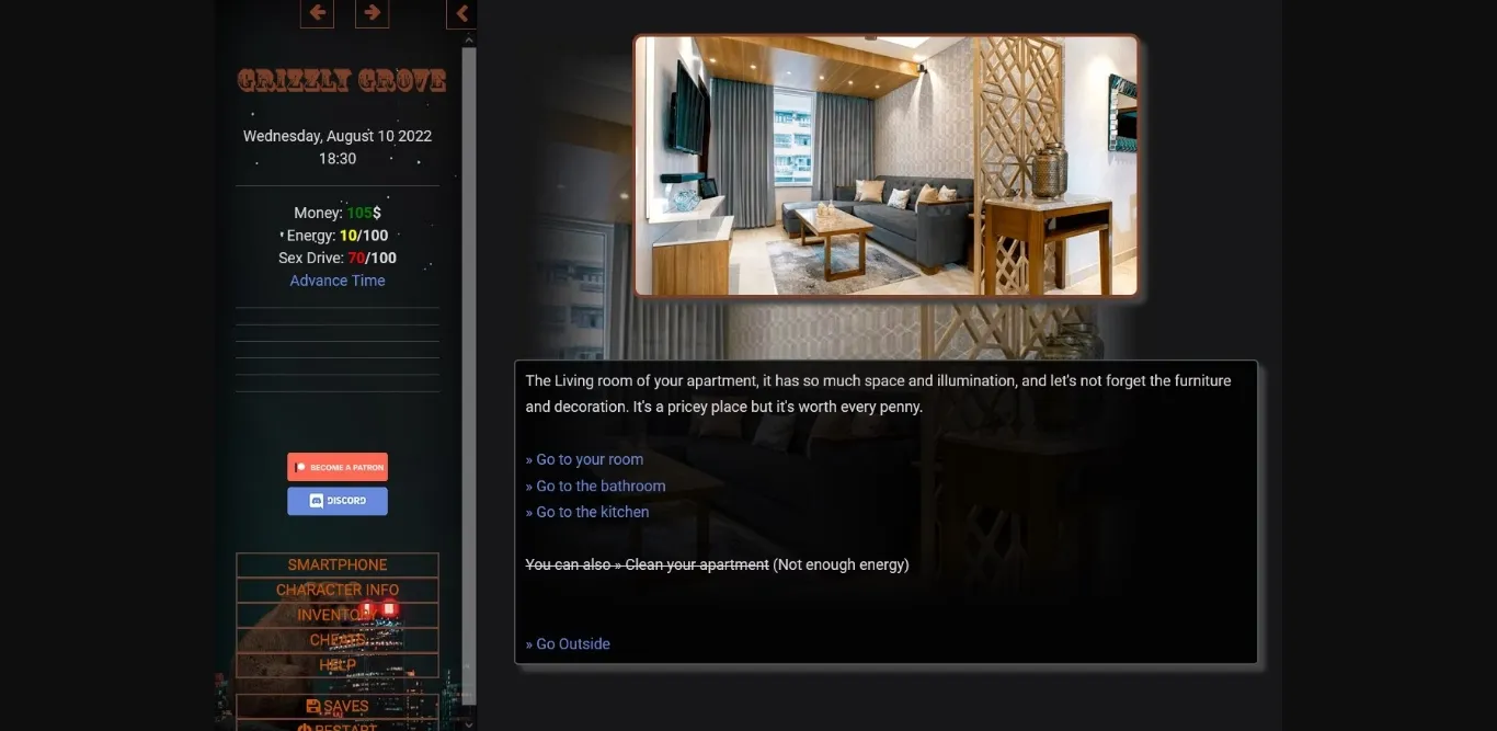 But you are not the type of guy that runs away. Eventually, you make the decision to come back, and with the help of your uncle, you rent an apartment on Grizzly and try to make your life here. Will you succeed? or will you return to your uncle’s house with your tail between your legs? it’s all up to you.