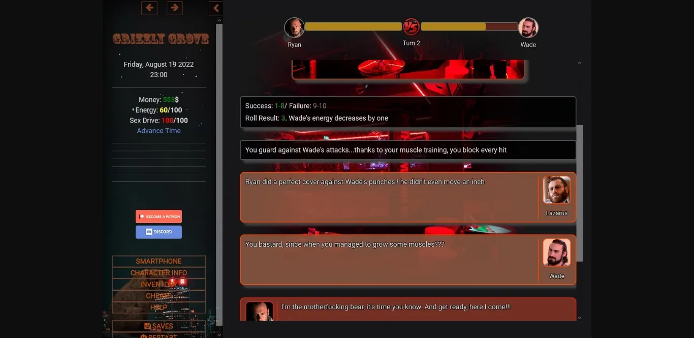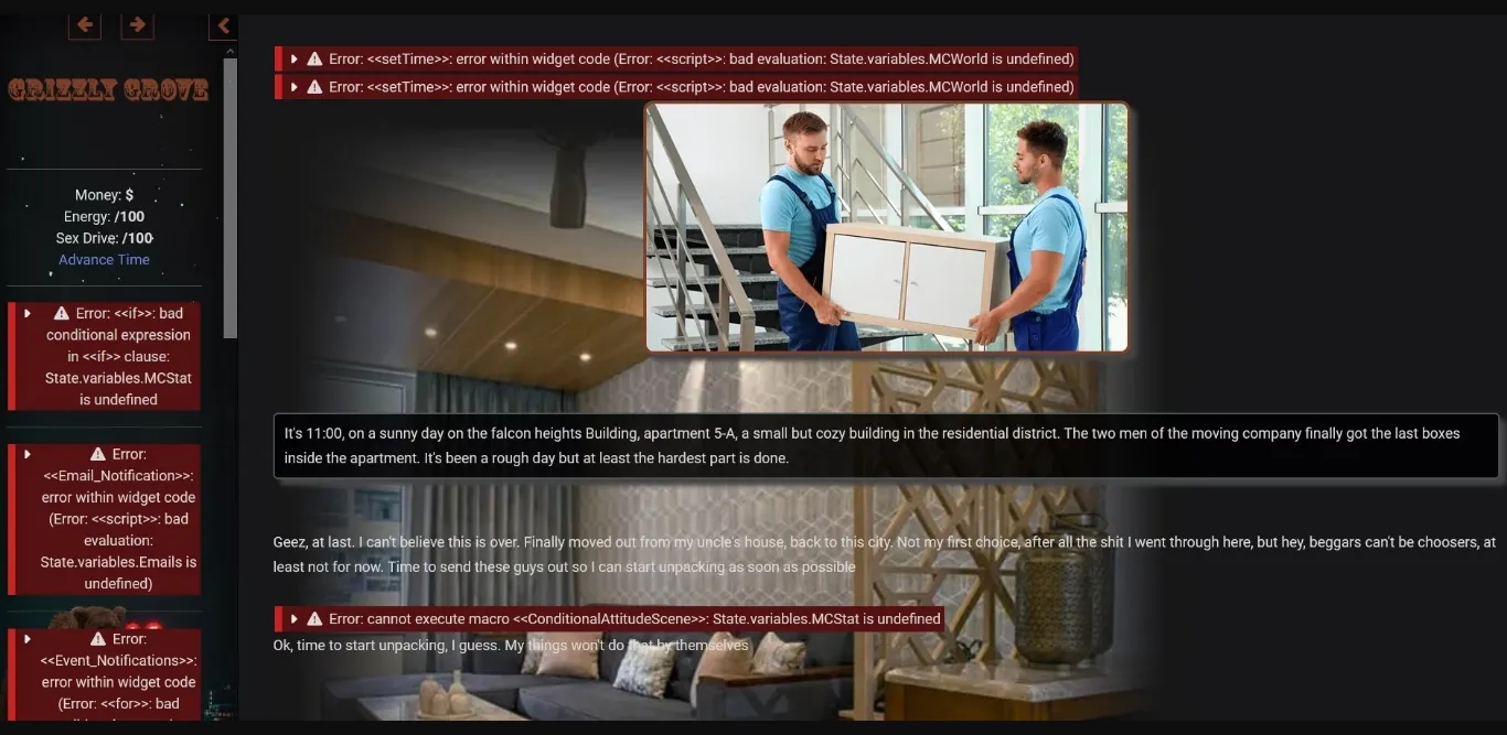 The game is a Sandbox, heavily text-based. Centered on Gay romance. You’ll choose your own path in Grizzly Grove city. The main idea is to navigate and enter one of many storylines available, as well as explore the various locations through the city, meet various characters, and have some fun in the process. The city is full of hairy, daddy-looking guys (now you see why the grizzly on the game’s name?).. Let’s begin from the obvious: Gay Tag IS NOT avoidable. I’m aware of the of the vaginal sex tag, so if you still want to know about it, please read the Dev Notes section, there I explain almost every kink and fetish on this game.