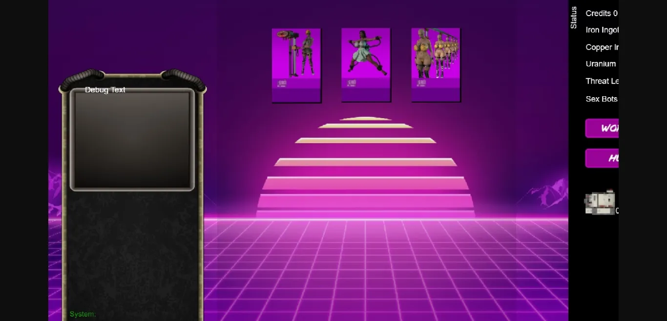 Currently Sex Bot Corp is in development. I have just started on it and it has waves and waves of coding to go. Help support me so I can continue to get the buildings created by a tile artist. Each building is interactable and serves a purpose as you take over the world.