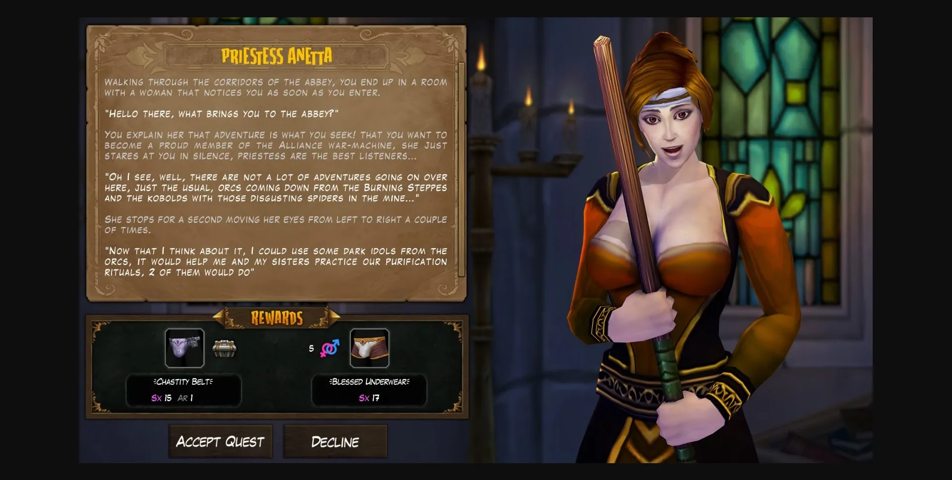 - Priestess Anetta has a new quest