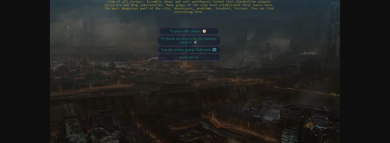 Awakened from a very long slumber, you found yourself in a distant future, with a perfect body and your own advanced autonomous fortress, perched in the heart of the old, worn megacity. Society succumbed to vice long ago, morality is outdated, crime is rampant and widespread. Mega-Corporations control people’s lives, and there is no end to this vile cycle. Oppose, or succumb to temptation that night city can offer. The choice is yours.