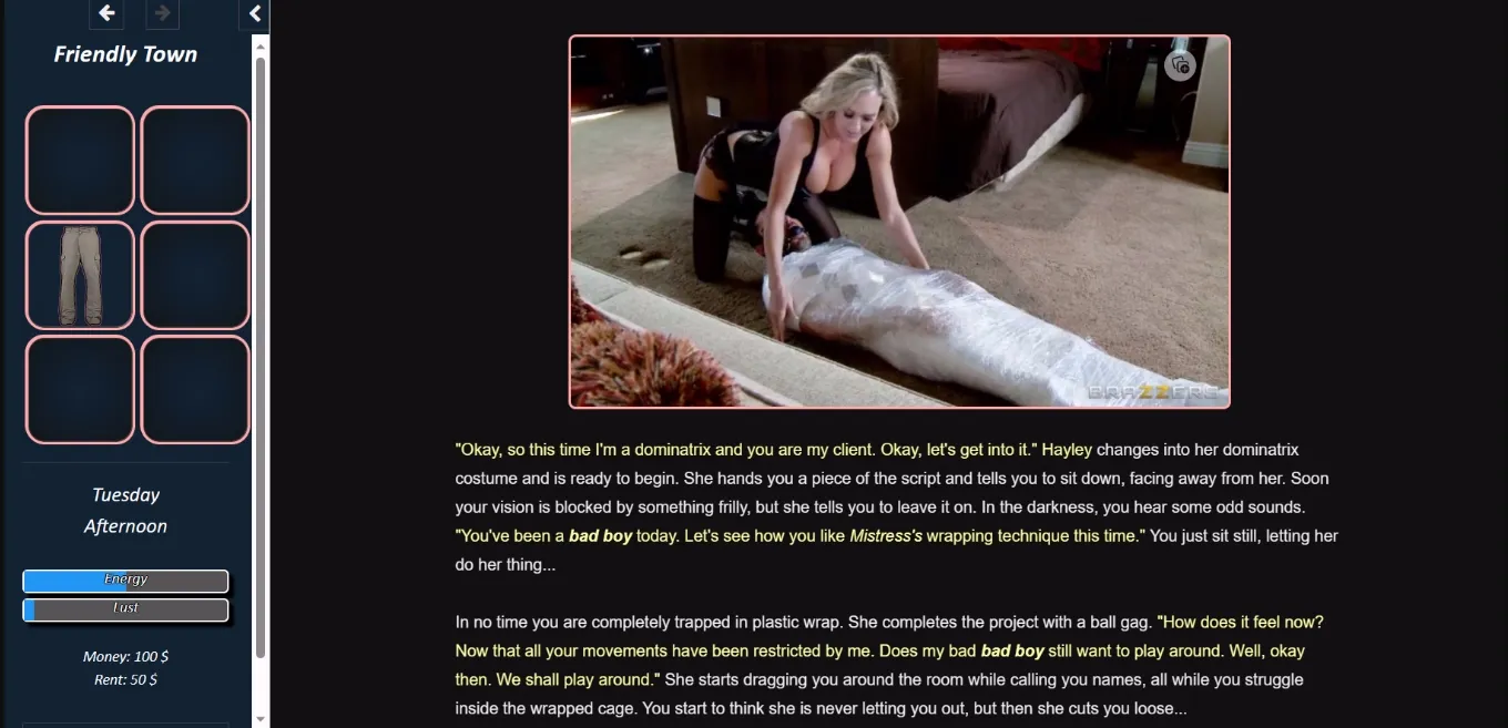 Choose your own adventure text based sandbox game made with Twine, that is both open-ended and with a focus on different stories should you choose to pursue them. Focus on male domination by hot real pornstar milfs.