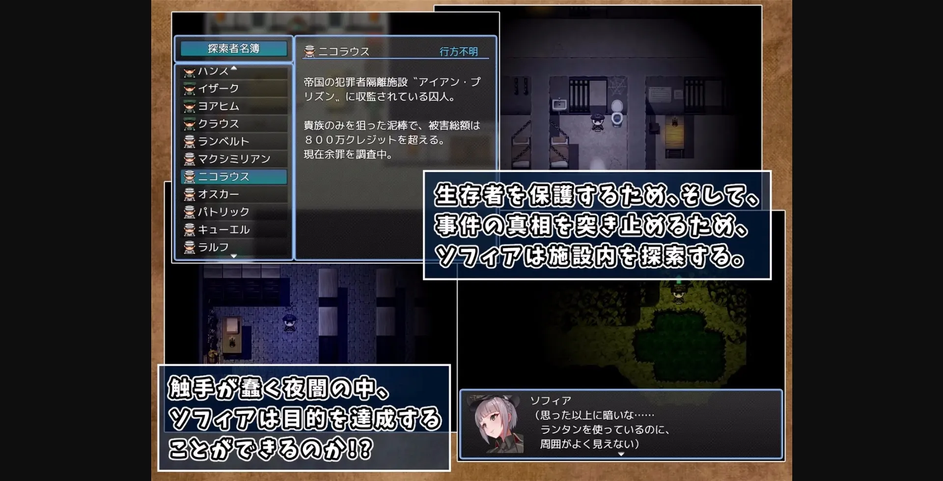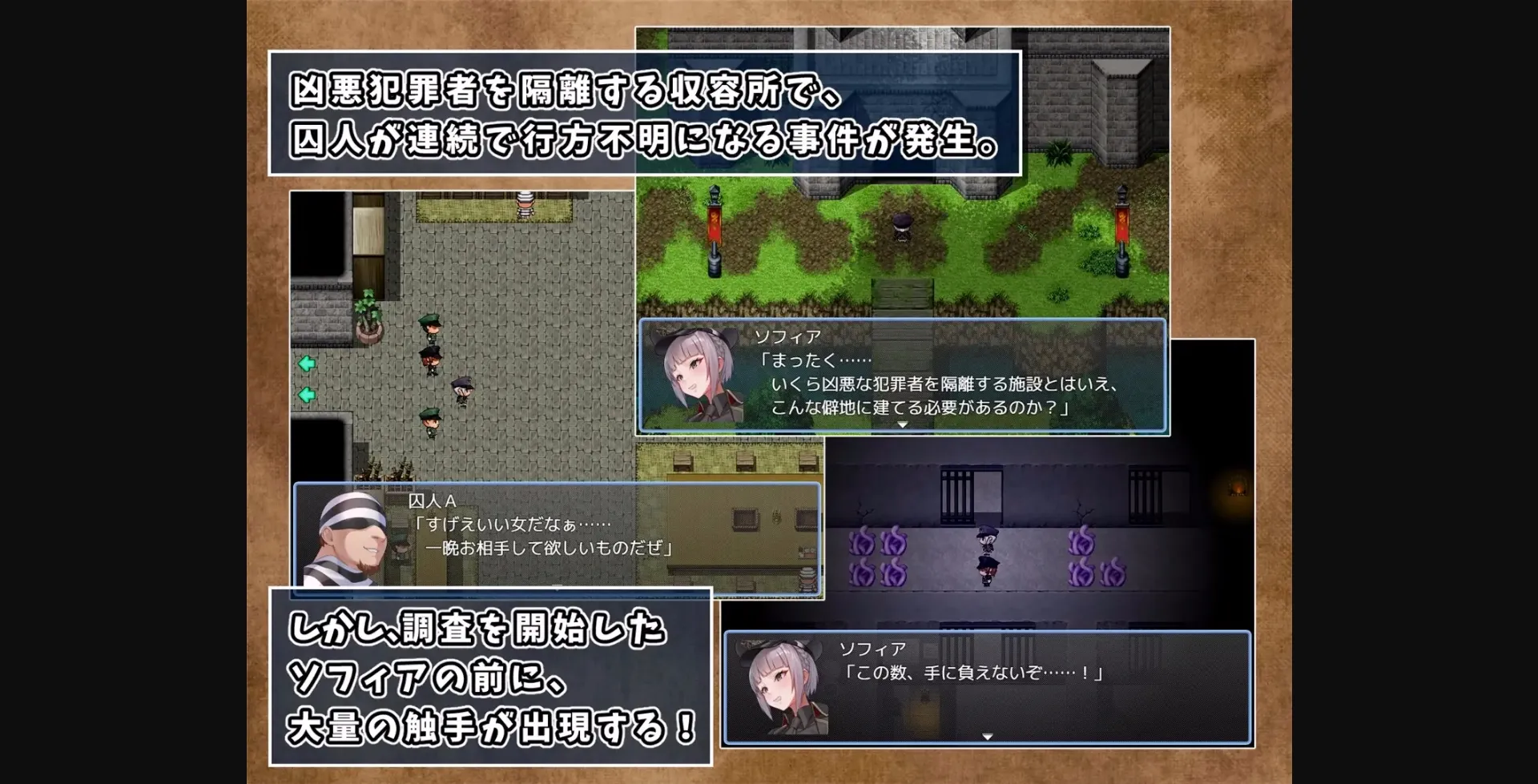 Sofia, an imperial special investigator, visits a criminal detention facility near the imperial capital to solve a case of missing female prisoners. Sofia begins her investigation, but is suddenly attacked by tentacle monsters. Will Sofia be able to navigate through the swarm of tentacles and uncover the truth behind the incident?