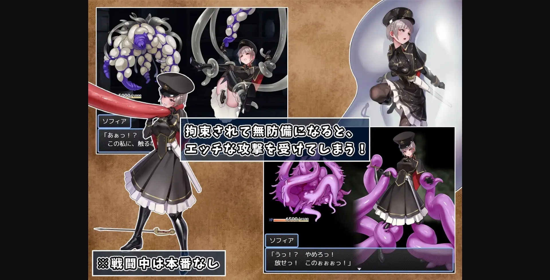 2D Game, 2DCG, Censored, Japanese Game, Female Protagonist, Voiced, Anal Sex, Creampie, Group sex, Handjob, Multiple Penetration, Rape, Tentacles, Vaginal sex, Virgin, Monster, Rpg