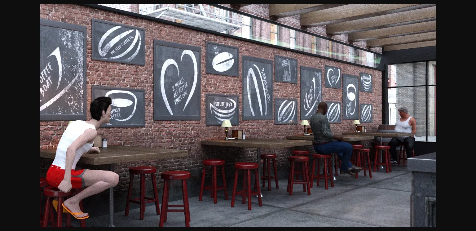 - Added extended interview scene with Alex for continued work at coffee shop.