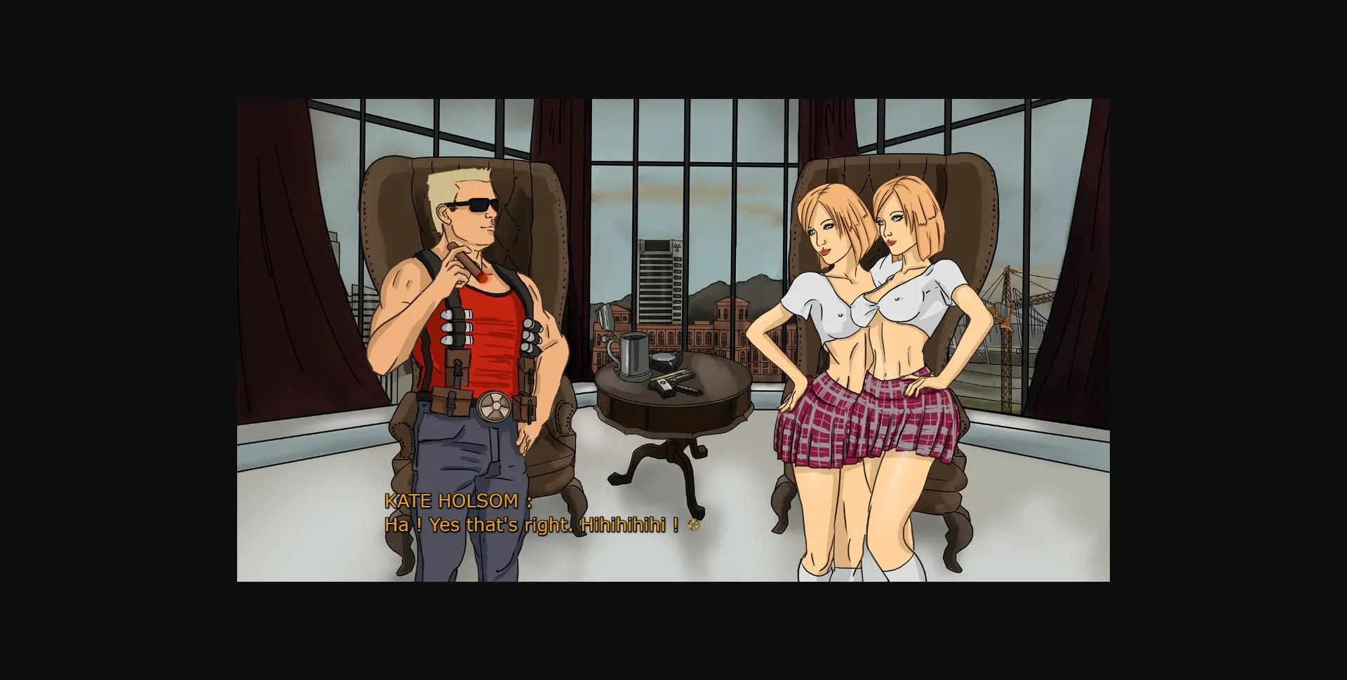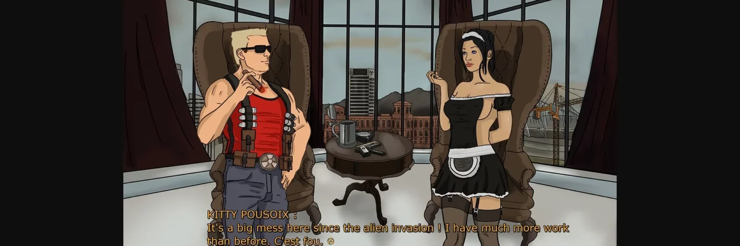 I’d like to introduce my first free game, it’s a story set in the universe of Duke Nukem. It’s more like a little game than a true visual novel. Here, you’ll be able to play as Duke himself and will interract with a phone to call his babes, and play animations. Cause yes, in this game, sex scenes are not frozen. All the sex scenes will be animated. The long term plan of this game is to create a game with all the babes from "My Digs".