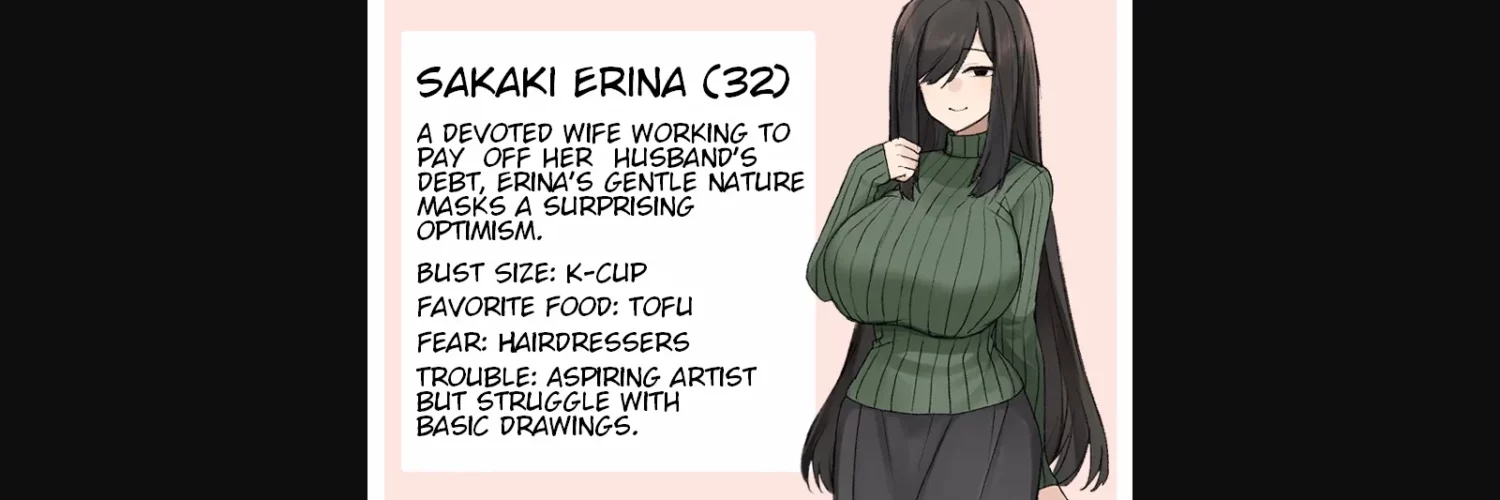 Erina, a devoted wife, discovers her husband Takeru has lost his job and is in debt. To save him from the dillema, she makes a hard decision: to sell her body.