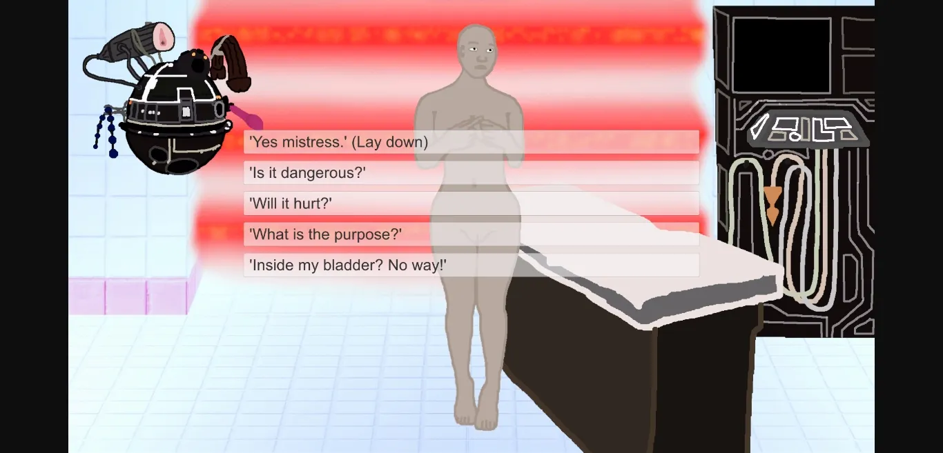 While there are a few scenes where you can play a dominant part, the game will require you for the most scenes to submit yourself to the experiments.