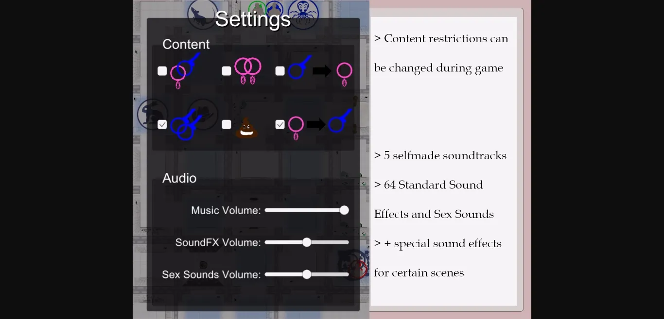 2D Game, 2DCG, Animated (low number of frames), Male Protagonist, Female Protagonist, Multiple Endings, Anal Sex, Bdsm, Bestiality, Creampie, Exhibitionism, Female domination, Furry, Futa/Trans, Gay, Groping, Internal view, Lactation, Lesbian, Male Domination, Oral Sex, Pregnancy, Rape, Scat, Sex Toys, Slave, Tentacles, Transformation, Urination, Vaginal sex, Virgin, Adventure, Fantasy, Puzzle, Strategy