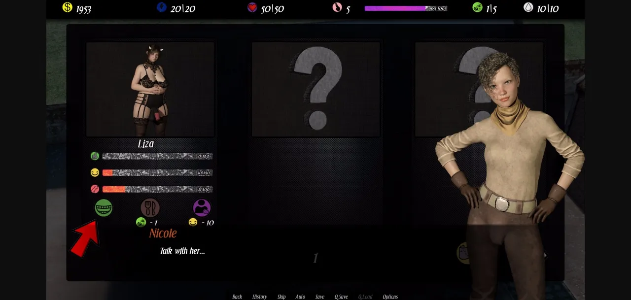 -A blowjob scene with Nicole (after completing the quest can activate when entering Nicole’s room with a 10% chance)