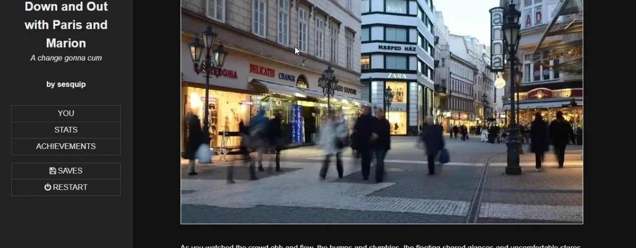 A few more scenes involving Paris and Marion on day 4. Some things might not happen dependent on various choices.