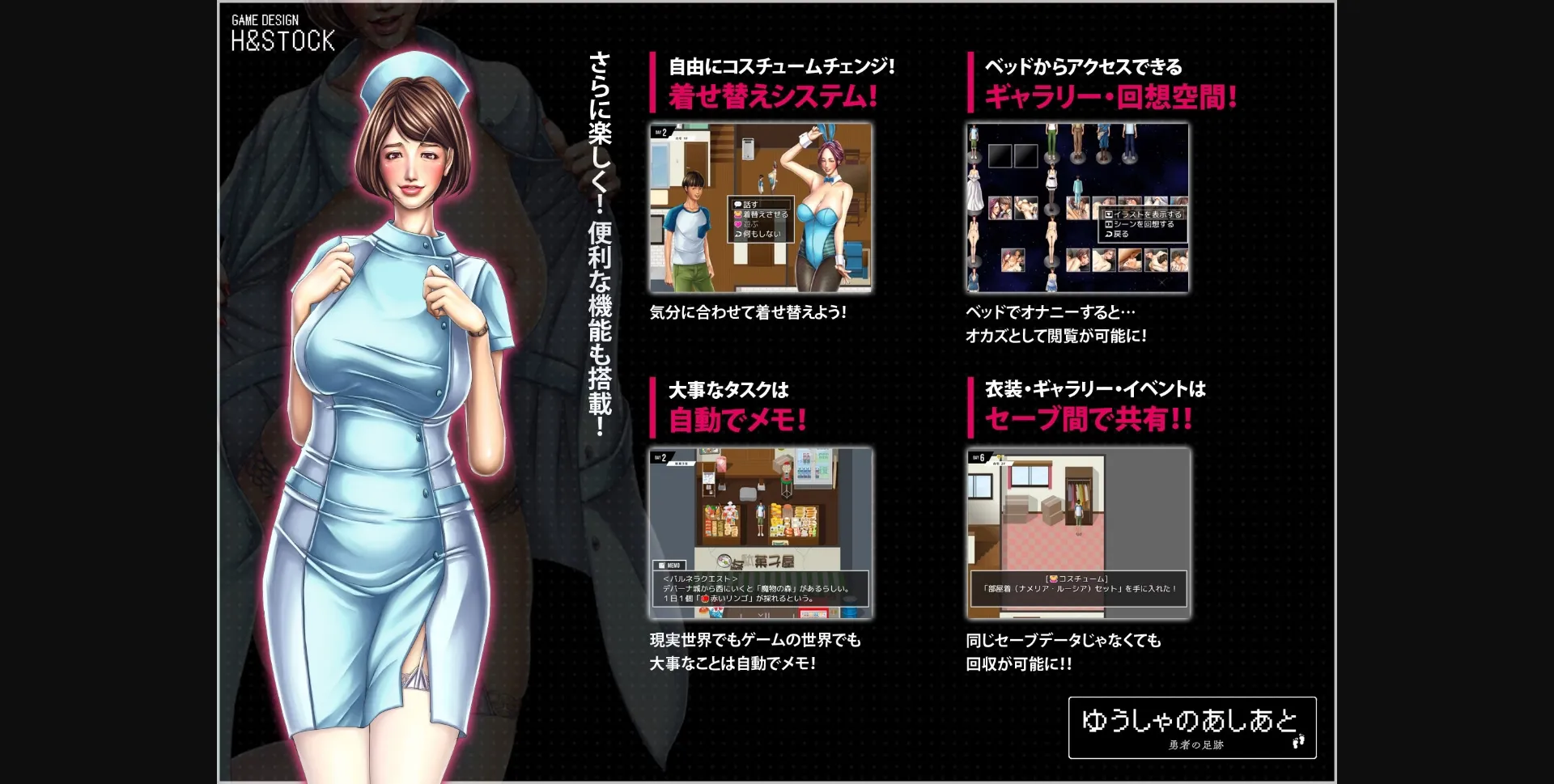 2dcg, 2d game, Male protagonist, Cosplay, Adventure, Rpg, Shota, Big tits, Big ass, Animated, Milf, Teasing, Groping, Japanese game, Masturbation, Handjob, Titfuck, Footjob, Oral sex, Ahegao, Vaginal sex, Creampie, Group sex, Censored, Fantasy, Turn based combat, Monster, Multiple endings, Lesbian, Bdsm, Sex toys, Sandbox