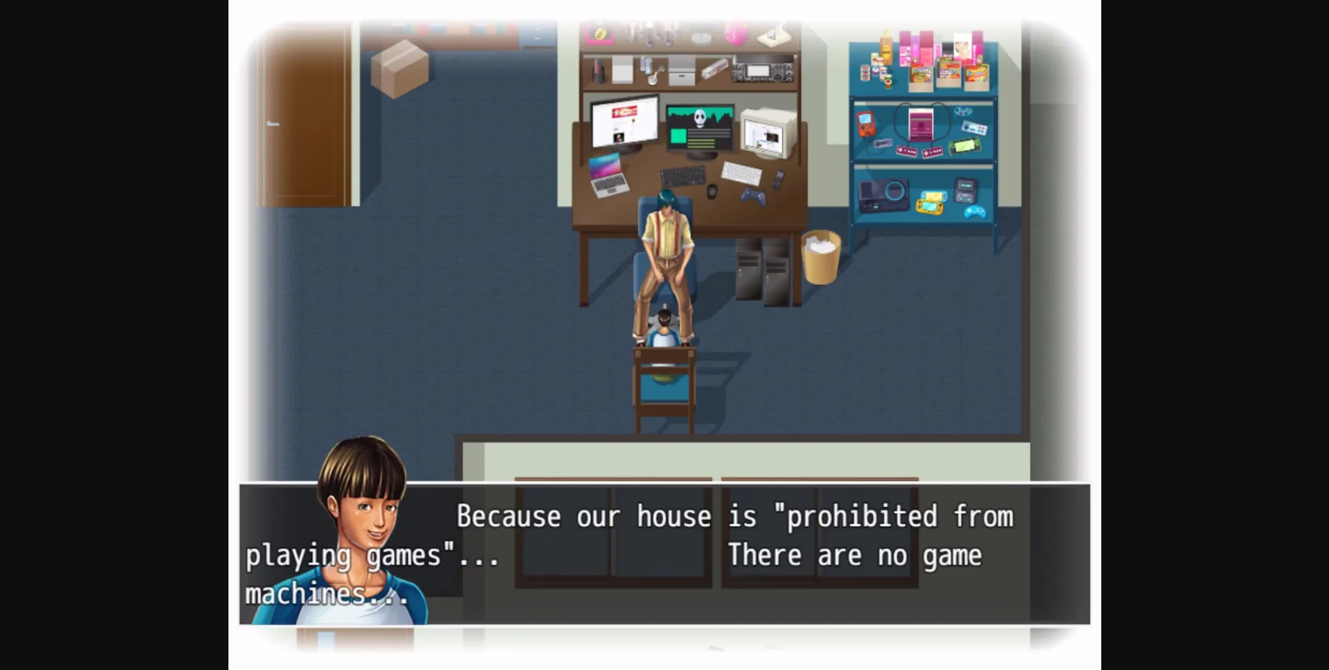 – You can always browse past galleries (illustrations) and flashbacks (H-scenes) by returning to your room!