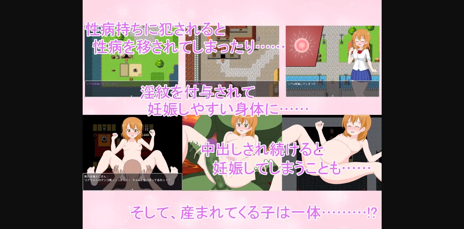 2DCG, 2D game, Female protagonist, Japanese game, Censored, Internal view, Vaginal sex, Creampie, Oral sex, Fantasy, Pregnancy, Monster, Ahegao, Virgin, Footjob