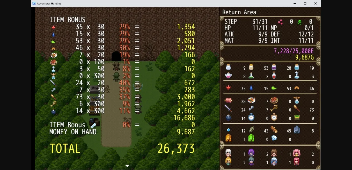 A simple rogue-like game where you repeatedly explore and hunt adventurers!