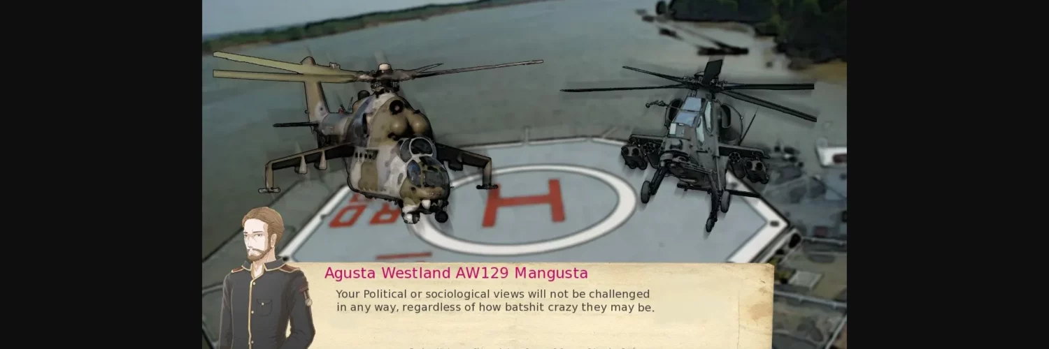 As the new student at the prestigious Base 732 Airstrike Academy, you interact with other Attack Helicopters… who, yes, you can date.