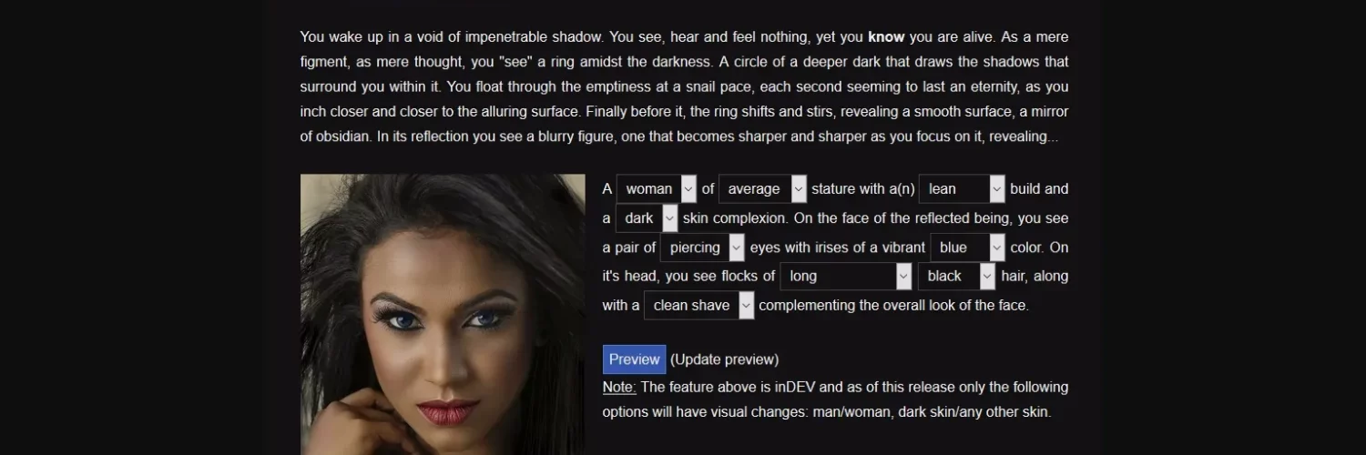 Text based, Real porn, Male protagonist, Female protagonist, Fantasy, Character creation, Turn based combat, BDSM, Exhibitionism, Oral sex, Masturbation, Sex toys