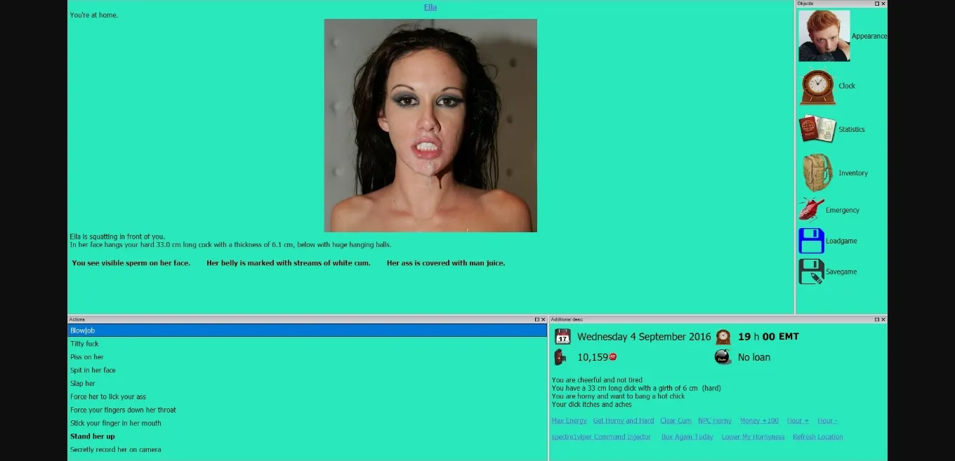 This game uses real porn for the picture and video assets. If you don’t like this type of game, don’t play it. Due to the large volume of NPCs generated, the pictures and videos will not necessarily match the NPC’s description. If this kills the immersion for you, you should look elsewhere.