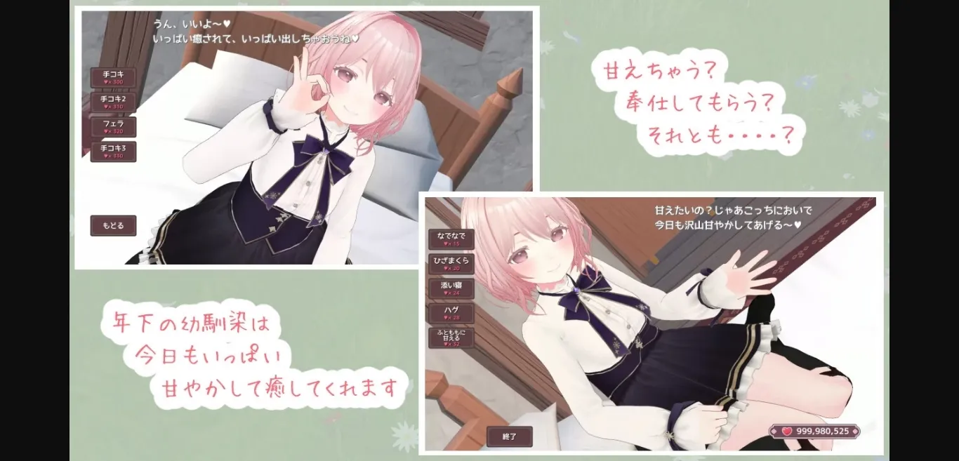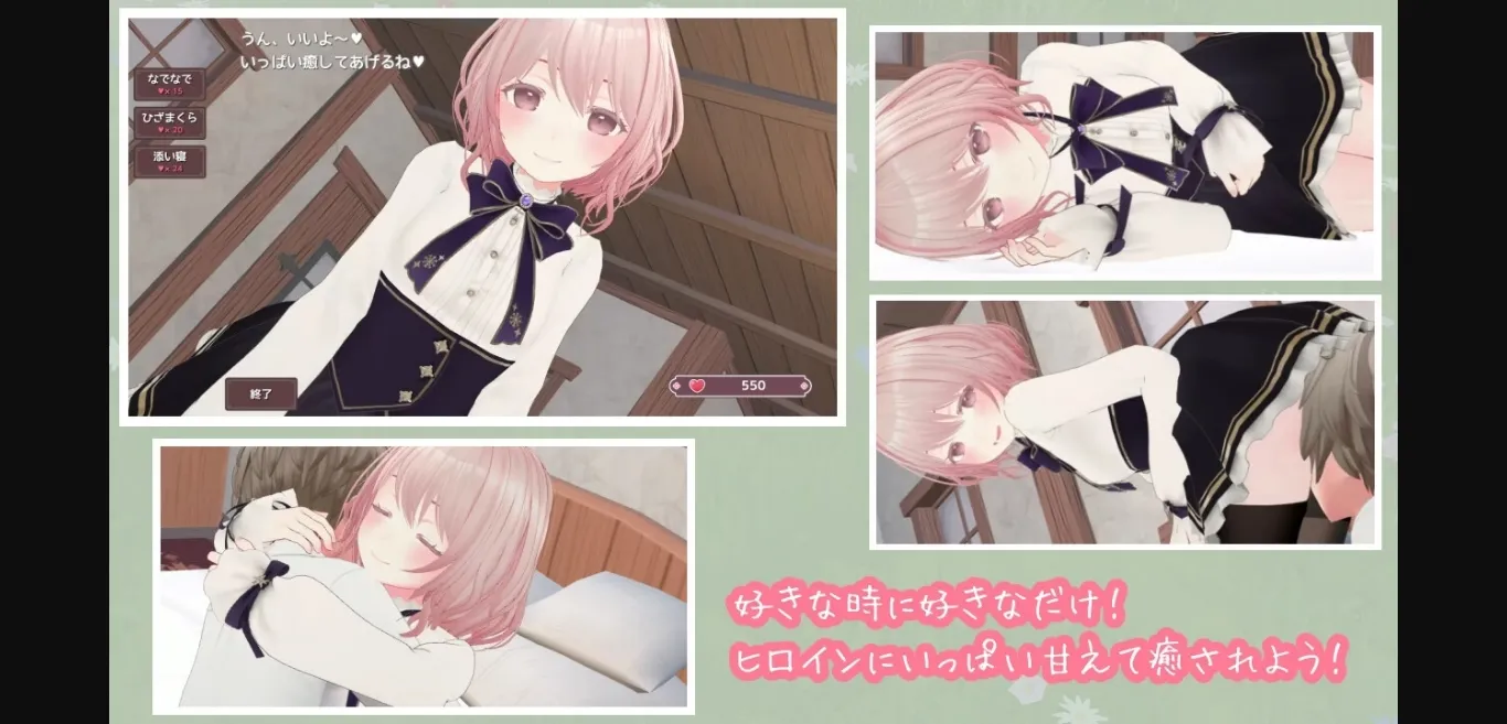 At first, you can only rely on her care, but as treatment progresses and your bond deepens, you’ll unlock more interactions—touching, serving, and even lewd scenes.