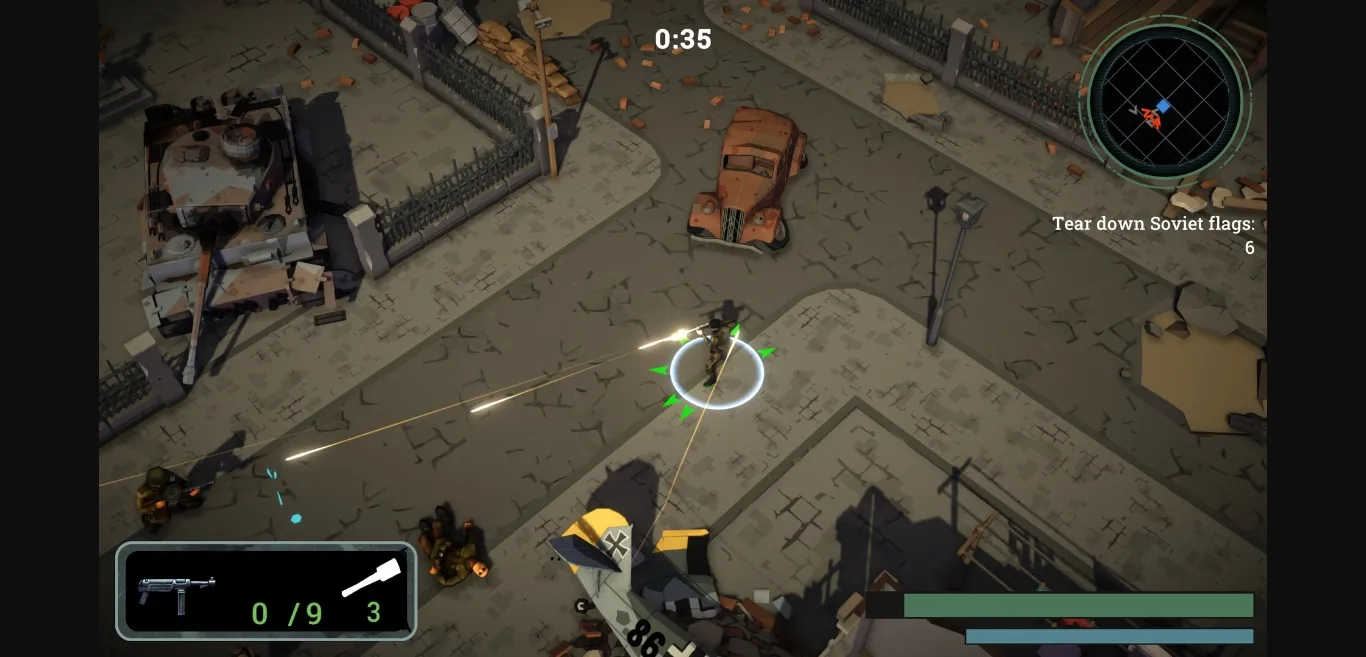 - Intense top-down shooter gameplay set in a WW2 setting.