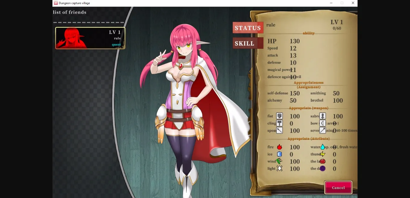 In the village, you can assign friends (place them in the facility) to create weapons and tools, and make money at the brothel.