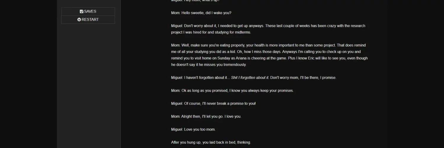 Hello everyone! This is the first game I ever made so please bear with me as I never written a story before. I appreciate all feedback whether positive or negative.