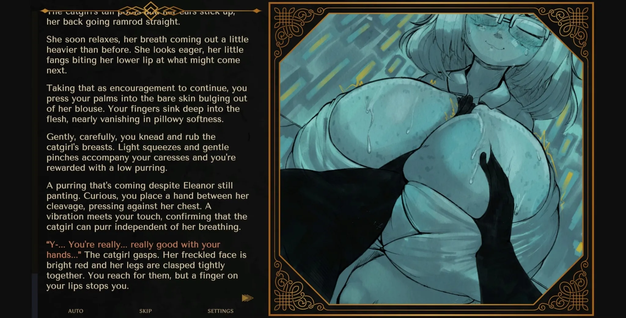 Currently working on content roadmap and giving patrons ways to pick out what characters/fetishes get added. The whole scenario is pretty open ended, though we already have a lot of content planned. I almost regret picking this title because I keep spelling delirium wrong and one day spellcheck won’t save me. The patron version currently has three sex scenes the free public one doesn’t.
