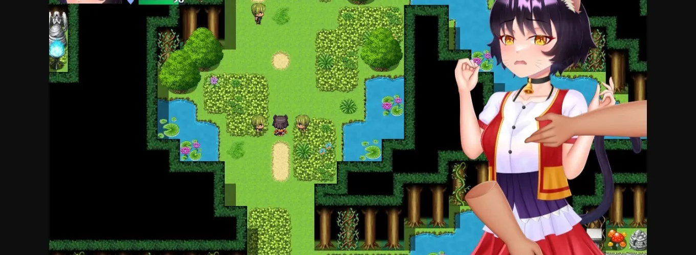 It’s a simple Erotic Game where you can explore an Island and look for Erotic Events. It has a simplified Combat. You run into Enemies and hit them automatically. If you run out of Action Points (AP) they’ll grab you. Your AP still regenerate during Grab Time. With enough AP a Counterstrike is possible. If you don’t have enough AP, you can delay the Enemy’s Action during Grap Time.
