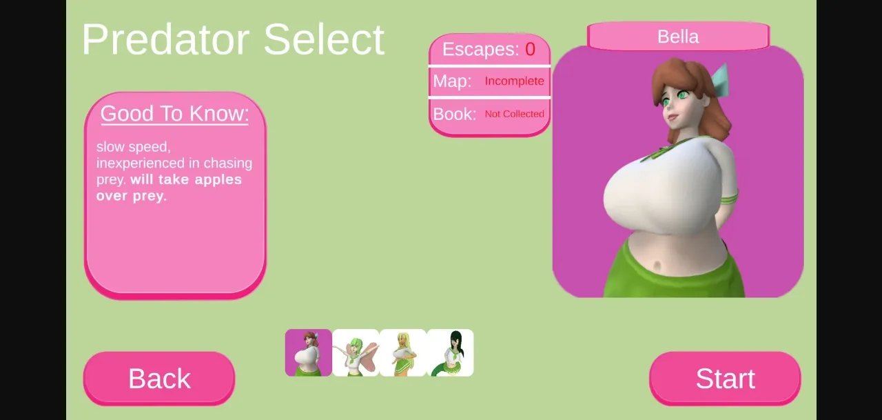 Players need to find keys in order to escape. Listen out for the predator in order to avoid being eaten. There are apples around the school that can help you escape from predators if you get caught. Other students will be walking around; looking clueless since they have no idea what is going on and maybe they can be useful to you in some way.