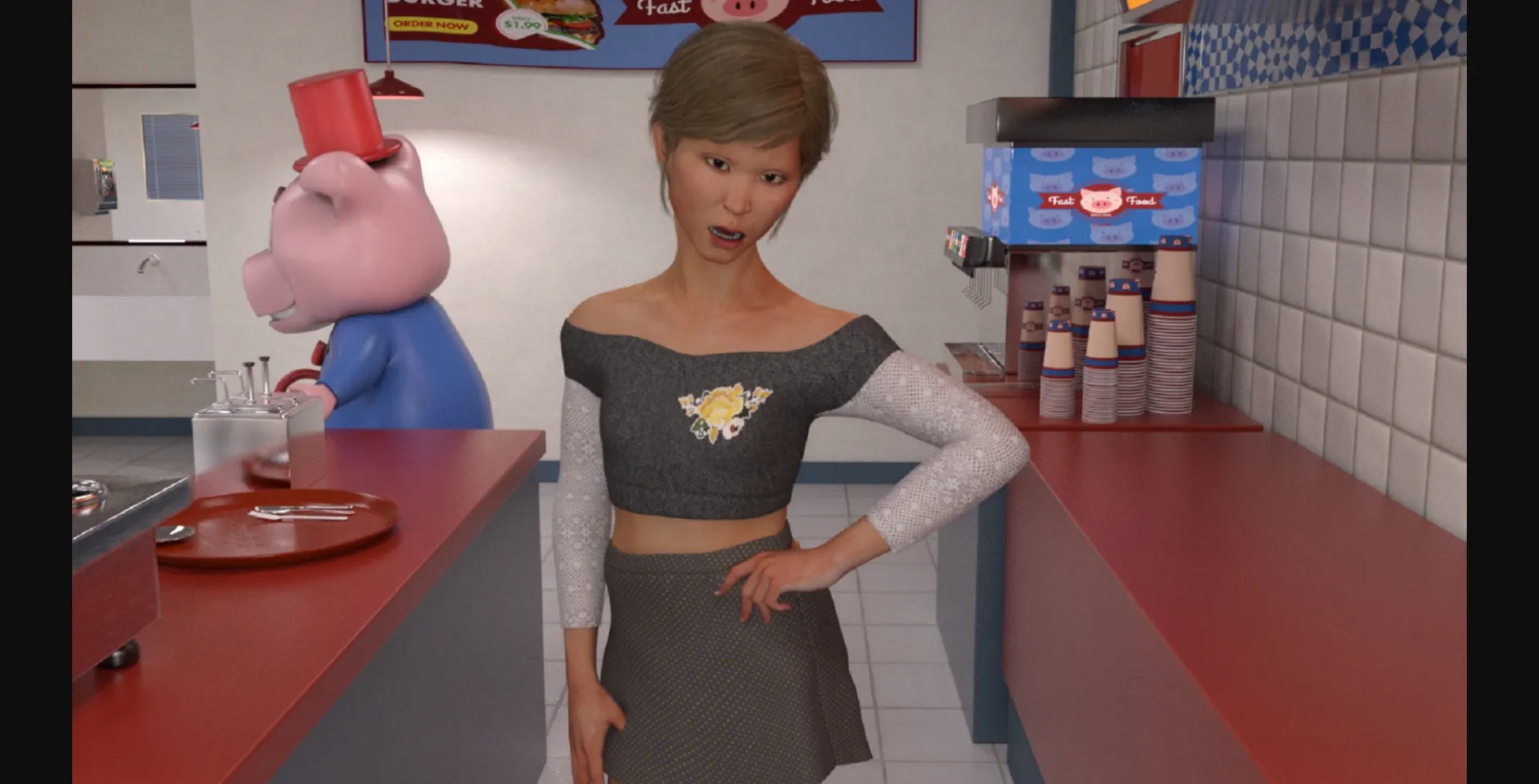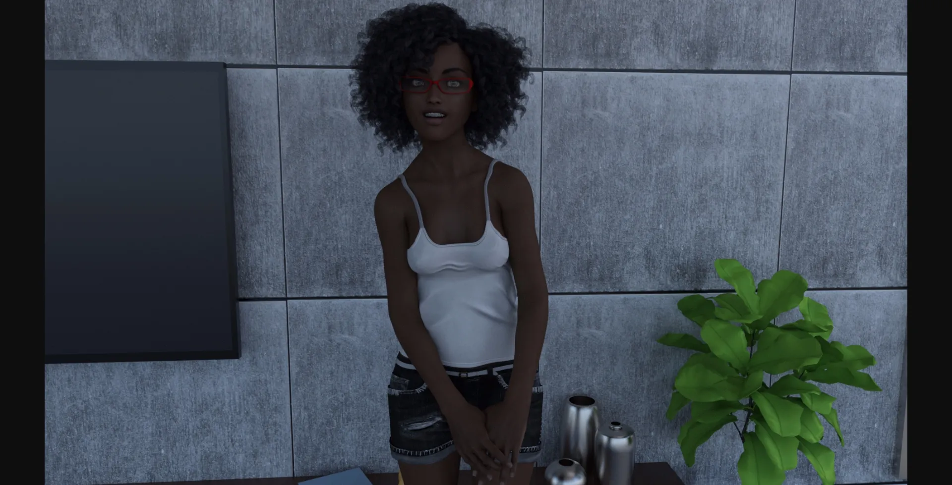 Spelling, punctuation grammatical errors. Instead of using the word "Thinking," when MC has a though, Italic font is used instead. Also you’re able to customize Tiffany’s age. There are also default ages for twins and Tiffany when you don’t enter an age.