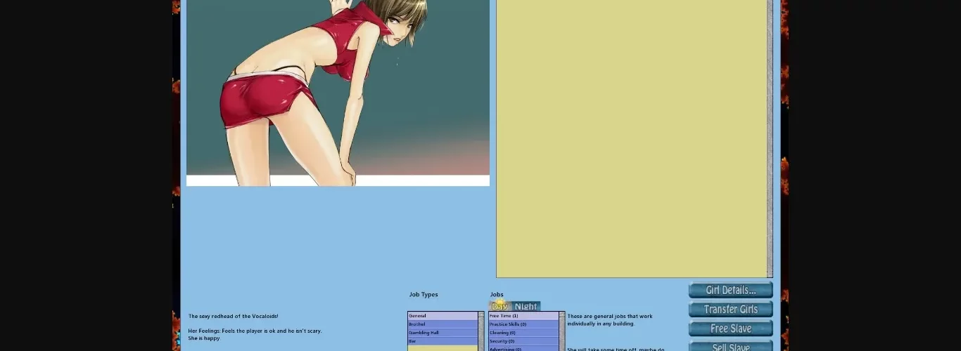 – One last thing: if your game crashes right after you click "New Game" (when you put your name and the brothel’s), just go and edit the "config.xml" file. You have to modify the first few lines – where "
