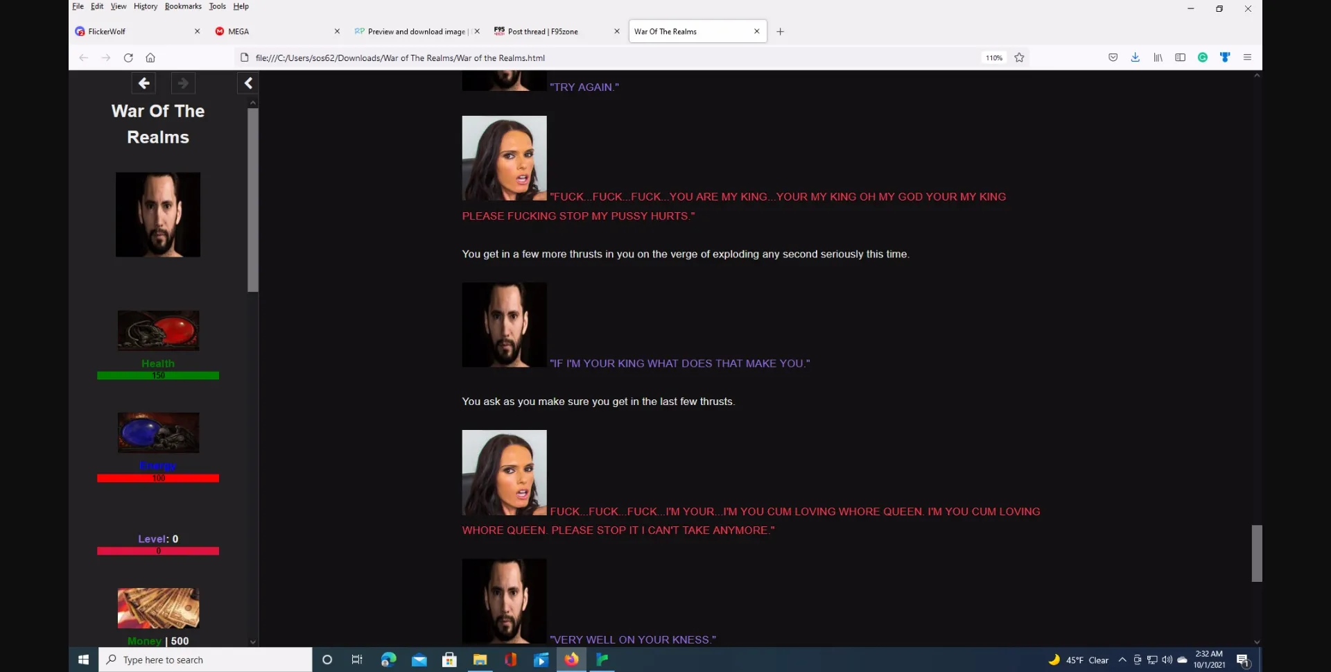 Welcome to War of The Realms my name is Roy, and this is my second attempt at using twine. As well as my third time trying to make I game. In my other games, my biggest problems were grammar and codding knowledge. I still have both issues but I haven’t given up so I ask you to bear with me because in all honesty even though I’m 37, I still have an 8th-grade reading level, so at times my punctuation and spelling will still suck.