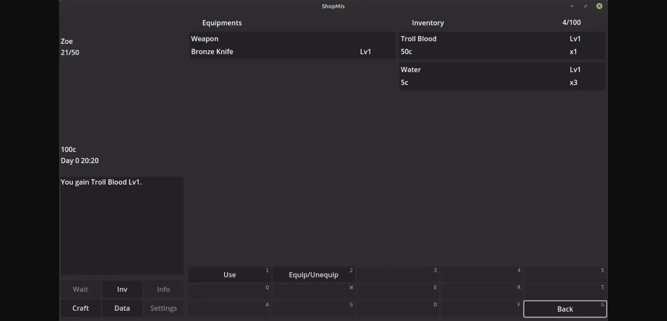 ShopMis: Shopkeeping Misadventures is a text-based adventure were you play as the new shopkeeper in a village called Maplewick.