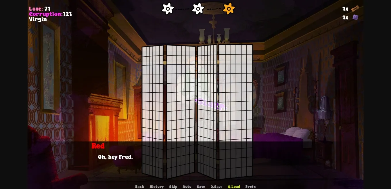 Once you have enough corruption (30 and 40 specifically) go visit Fred as Daphne, and there should be a few new scenes to select.