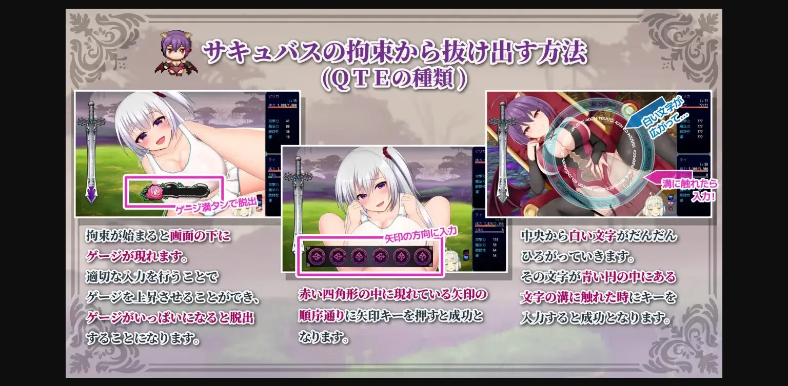 - Enemy succubi will change their behavior depending on the player’s actions and experience.