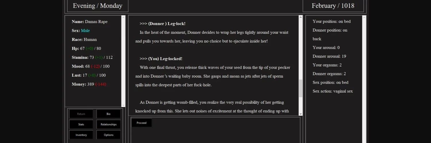 Character Creation, Male Protagonist, Female Protagonist, Text Based, Anal Sex, Big Ass, Big Tits, Creampie, Furry, Futa/Trans, Gay, Groping, Handjob, Lactation, Lesbian, Masturbation, Oral Sex, Pregnancy, Spanking, Teasing, Vaginal Sex, Fantasy, Monster Girl, Rpg, Sandbox, Simulator,